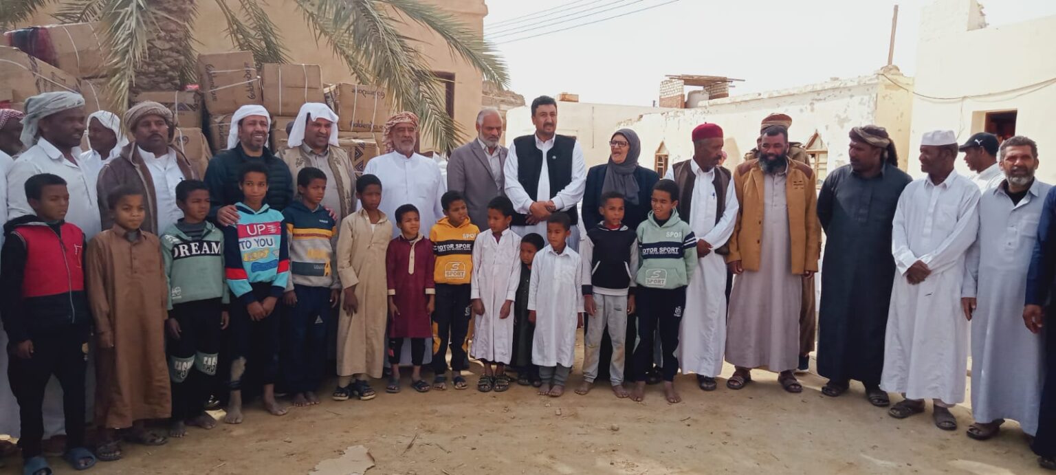 تسلم أهالي قرية جارة أم الصغير بسيوة ،هدية سمو الشيخ محمد بن زايد آل نهيان رئيس دولة الإمارات العربية المتحدة الشقيقة من المواد الغذائية والعينية ، الهدية شملت عدد ألف بطانية وألف جاكيت، وألف خيمة، وألف كرتونه مواد غذائية كذلك ٧٠٠ مساعدة عينية أخرى.