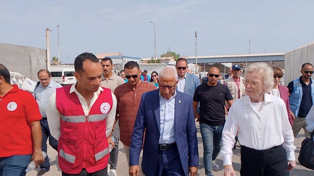 وتفقد الوفد برفقة محافظ شمال سيناء المساعدات الإنسانية المقدمة للفلسطينيين في غزة في مخازن الهلال الأحمر المصري بشمال سيناء.